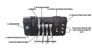 Modulo todo terreno con conexión para pieza de mano de baja y alta velocidad. Jeringa triple con punta intercambiable. Manómetro indicador de presión de 0 - 100 psi. Dos válvulas on-off . Válvulas Reguladora de agua. Una válvula piloto. Un tanque de agua con capacidad de 1/2 LT. Funcionamiento con pedal eléctrico. Moto-compresor libre de aceite de 110v - 750w. Dos pistones. Eyector quirúrgico de baja. Accesorios de conexión.